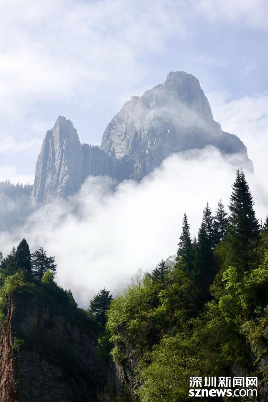 乘坐通往核心景區(qū)的旅游車進(jìn)入臨近壯觀山體的地段,從獨(dú)特的角度看到了云霧繚繞的山峰,真有置身仙境的感覺。李仁奇攝