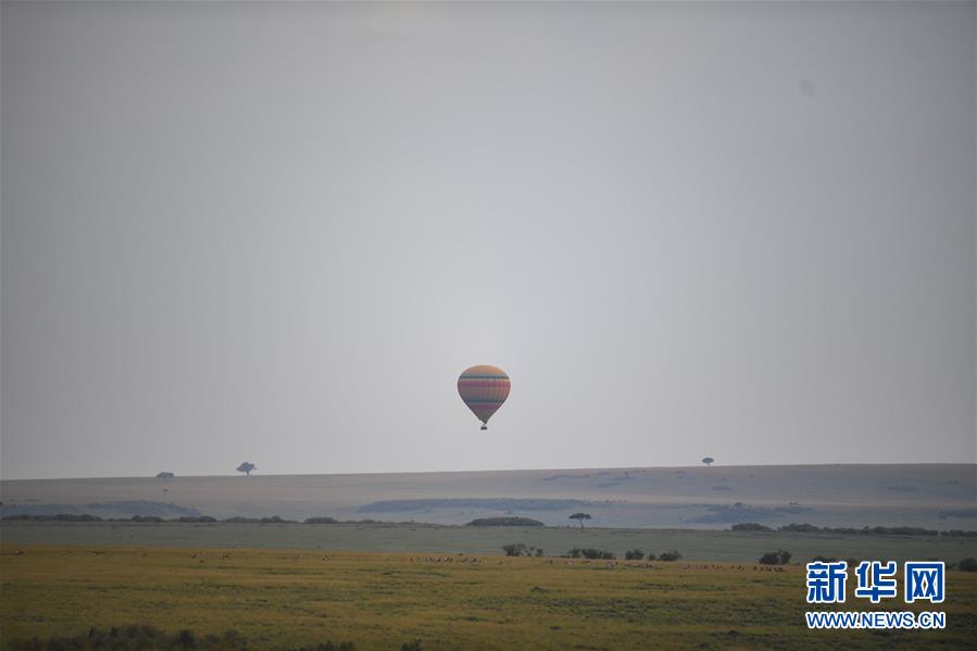 6月18日,游客在肯尼亞馬賽馬拉國家保護(hù)區(qū)乘坐熱氣球。  新華社記者 李琰 攝
