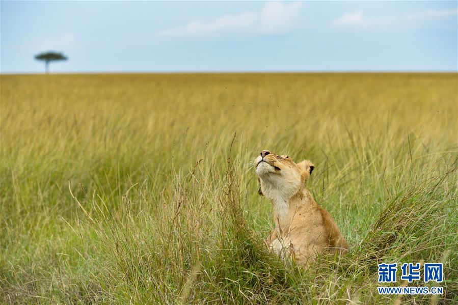 6月17日,在肯尼亞馬賽馬拉國家保護(hù)區(qū),一頭獅子在草叢中。  新華社記者 李琰 攝