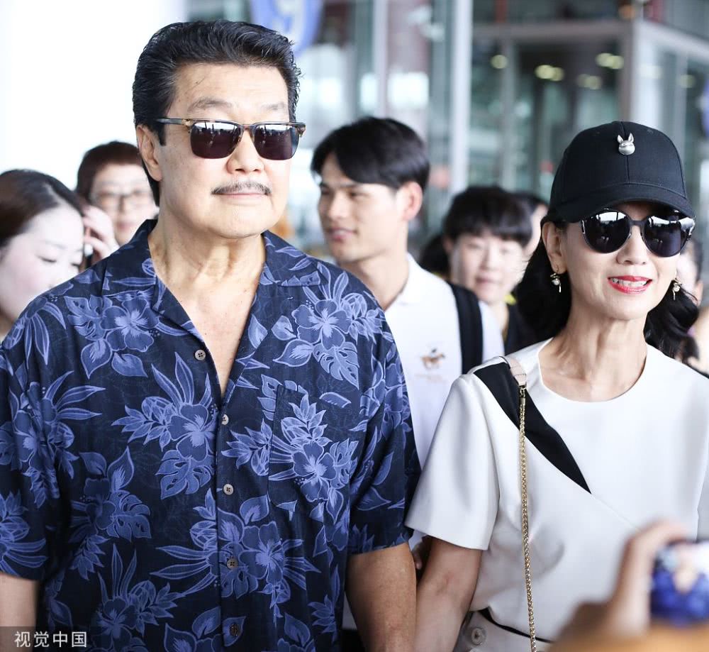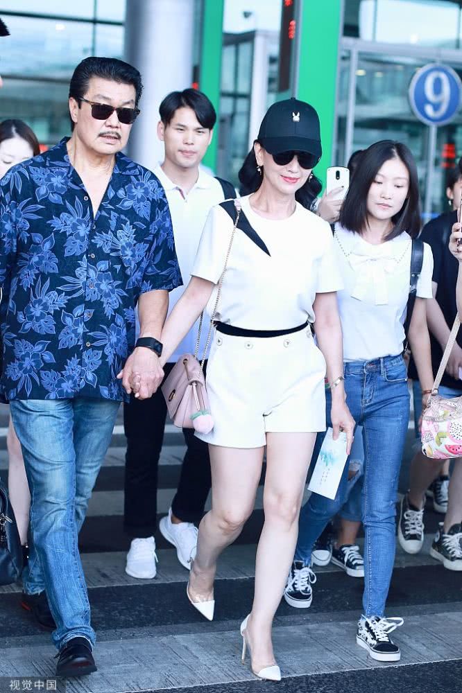 2019年8月10日,北京,趙雅芝與老公黃錦燊現(xiàn)身機場。