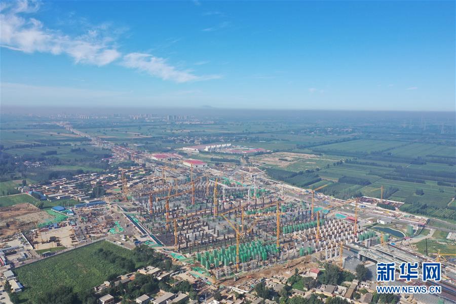 京雄城際鐵路雄安站總建筑面積47萬平方米,地上3層,地下2層,其中地下主體結(jié)構(gòu)將于近期完成,即將轉(zhuǎn)入地上主體結(jié)構(gòu)施工。 新華社記者 邢廣利 攝