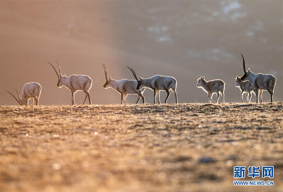 西藏羌塘自然保護區(qū)內(nèi)的藏羚羊(2019年1月31日攝)。新華社記者 普布扎西 攝