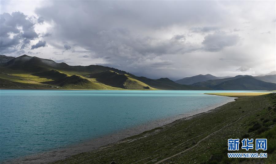 8月28日拍攝的羊卓雍錯風(fēng)光。 新華社記者 李鑫 攝