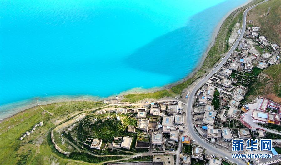 8月31日無人機拍攝的羊卓雍錯及周邊村落。 新華社記者 晉美多吉 攝
