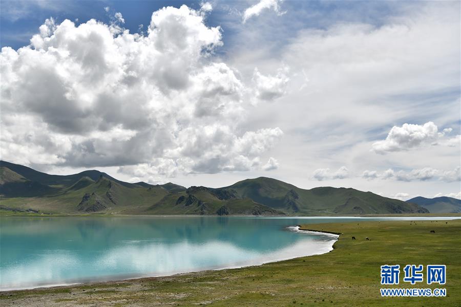 8月28日拍攝的羊卓雍錯風(fēng)光。新華社記者 李鑫 攝