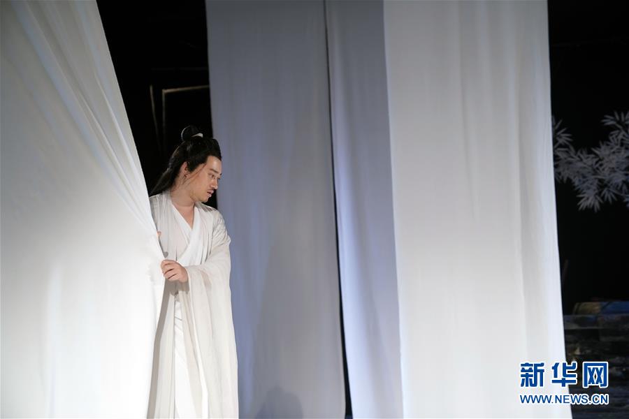 9月16日,演員在話劇《廣陵絕》中表演。 當(dāng)日,話劇《廣陵絕》在北京人藝實(shí)驗(yàn)劇場上演。新華社記者 金良快 攝