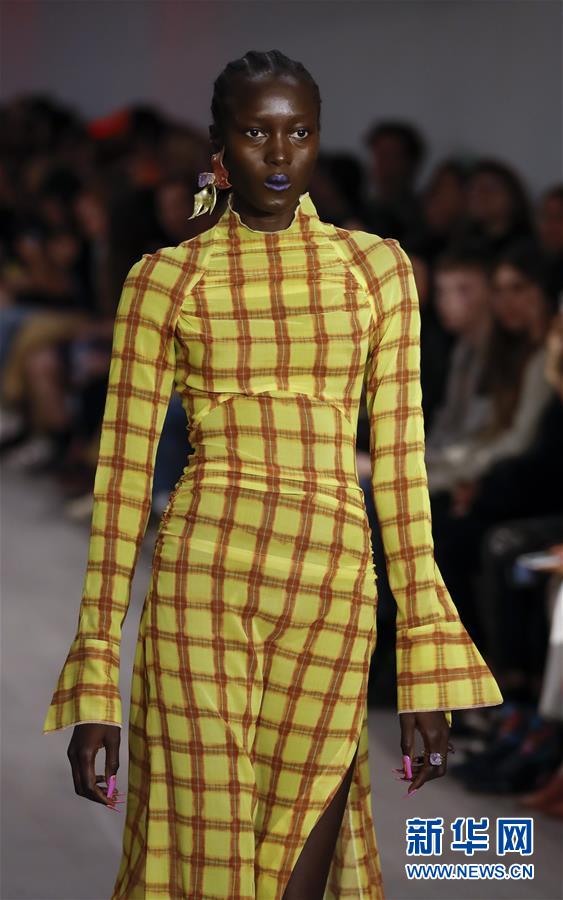 9月17日,在英國(guó)倫敦,模特在2020倫敦春夏時(shí)裝周上展示Charlotte Knowles品牌服飾。 新華社記者 韓巖 攝