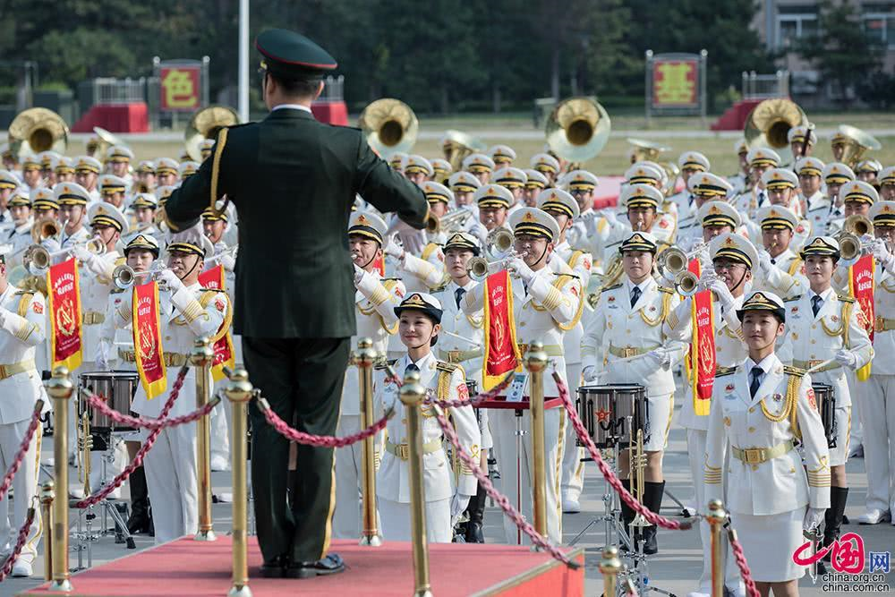 2019年9月17日,閱兵集訓(xùn)點(diǎn),聯(lián)合軍樂團(tuán)訓(xùn)練中。中國網(wǎng)記者張若夢攝