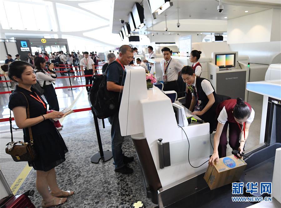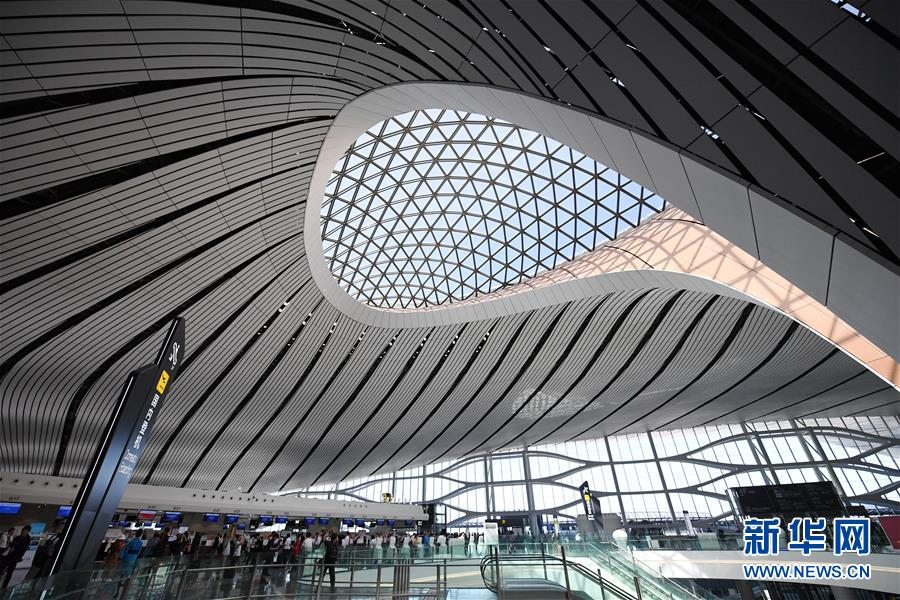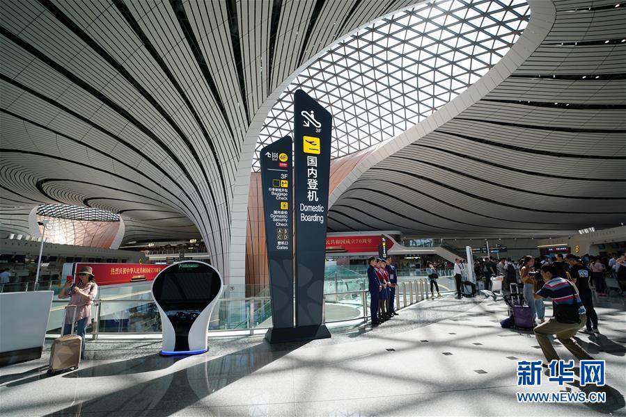 9月25日,中國南方航空公司的CZ3001次航班從北京大興國際機場起飛。當(dāng)日,北京大興國際機場正式通航。北京大興國際機場位于北京市大興區(qū)和河北省廊坊市廣陽區(qū)之間,與天安門直線距離為46公里,是目前全球建設(shè)規(guī)模最大的新建機場。新華社記者鞠煥宗攝