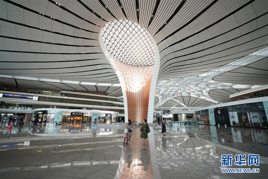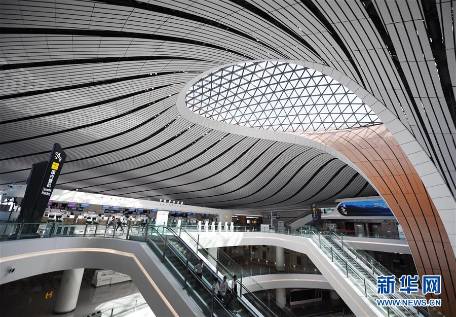 9月25日拍攝的北京大興國際機場航站樓內(nèi)部。新華社記者張晨霖攝