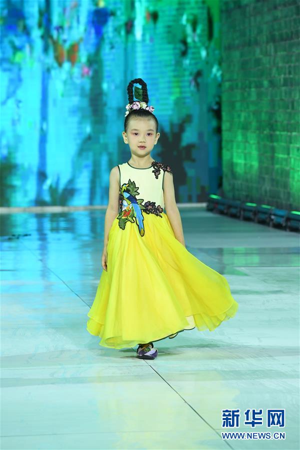 9月25日,小模特在榮昌夏布·張義超非遺時尚大秀上展示時裝設(shè)計師張義超的時裝作品 新華社記者 唐奕 攝