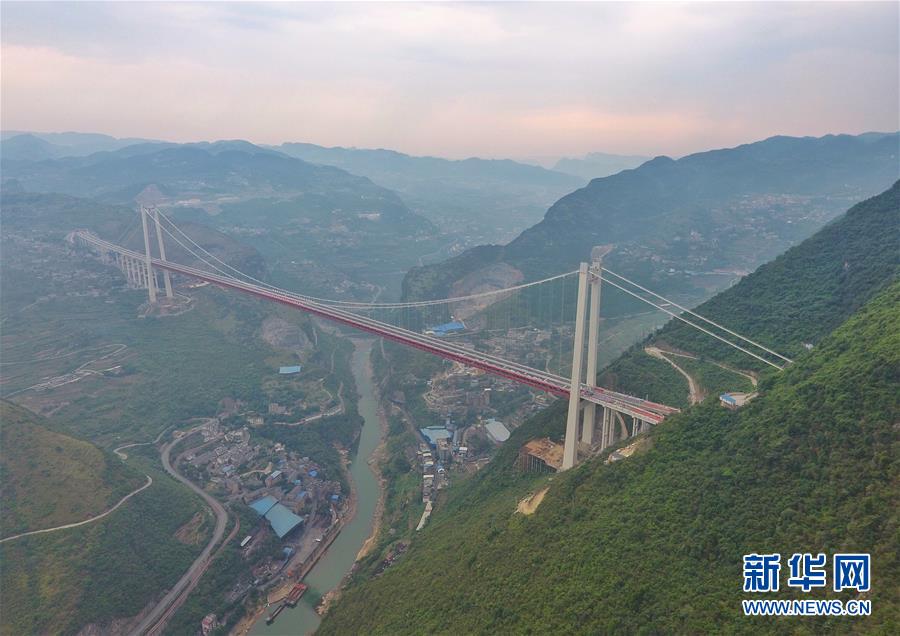 赤水河紅軍大橋全長2009米,主跨1200米,主塔高243.5米,在全國山區(qū)同類型鋼桁梁懸索橋梁中排名前列,由四川省鐵投集團(tuán)投資、四川路橋集團(tuán)承建,于2017年上半年開工。 新華社記者劉坤攝