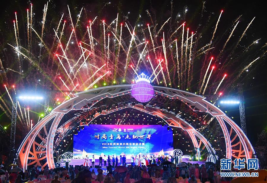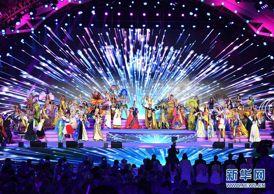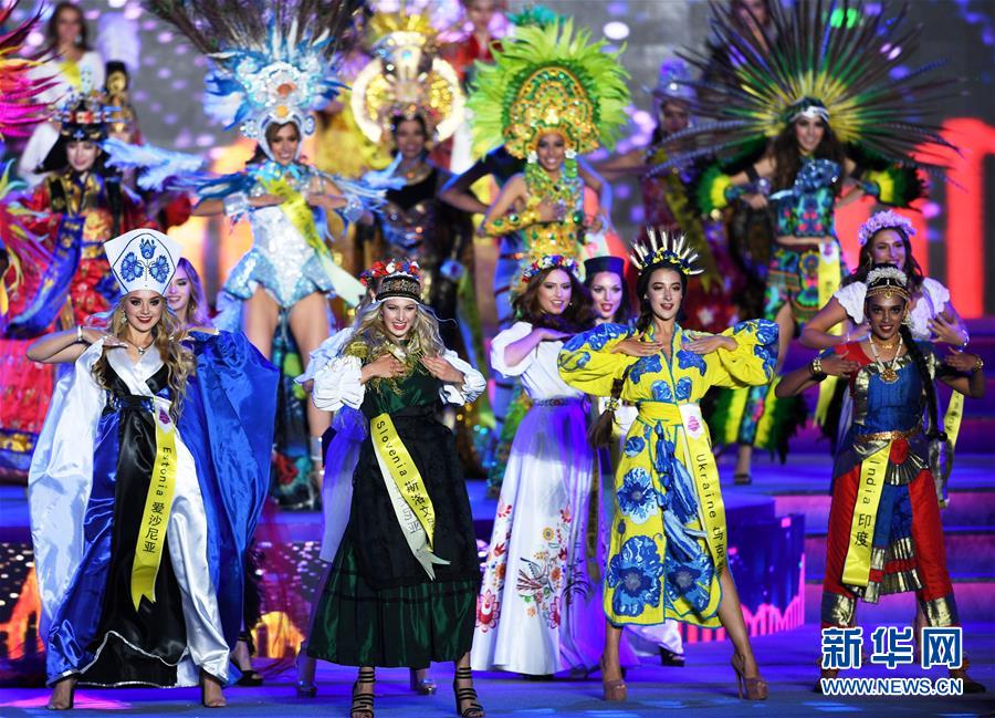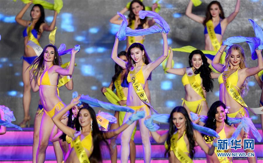 10月6日,選手在頒獎儀式上。 10月6日晚,2019世界旅游小姐全球總決賽頒獎盛典在山東青島舉行。來自67個國家和地區(qū)的佳麗在民族服裝、泳裝、晚裝以及才藝展示環(huán)節(jié)各展風采,最終來自墨西哥和加拿大的兩名選手分獲冠亞軍,中國選手譚若依獲得季軍。 新華社記者 李紫恒 攝