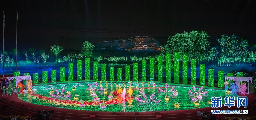 10月9日,演員在節(jié)目“綠野漫游”中表演。當(dāng)日,2019年中國北京世界園藝博覽會閉幕式在北京舉行。新華社記者翟健嵐攝