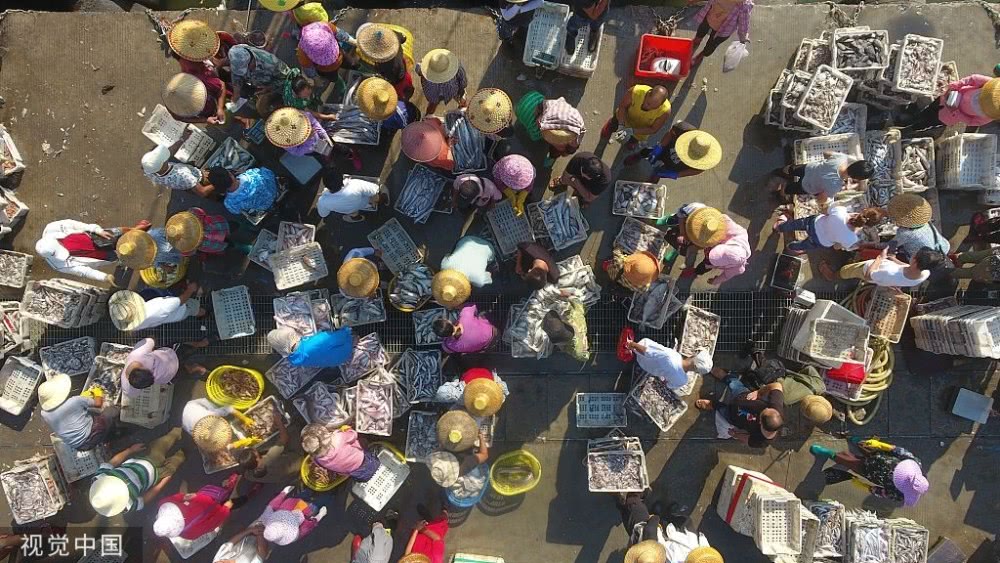 金秋時(shí)節(jié)海產(chǎn)品豐收,漁民港口卸貨引來無數(shù)客商選購,海鮮誘人