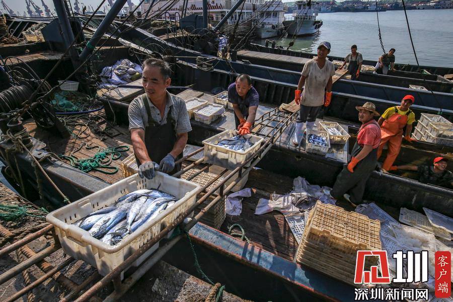 連日來,山東日照嵐山中心漁港迎來秋捕高產(chǎn)期,鲅魚、帶魚、鯧魚、螃蟹等種類豐富的海產(chǎn)品大量上岸,漁民抓緊時(shí)間分揀裝運(yùn),保障節(jié)日市場海鮮供應(yīng)。