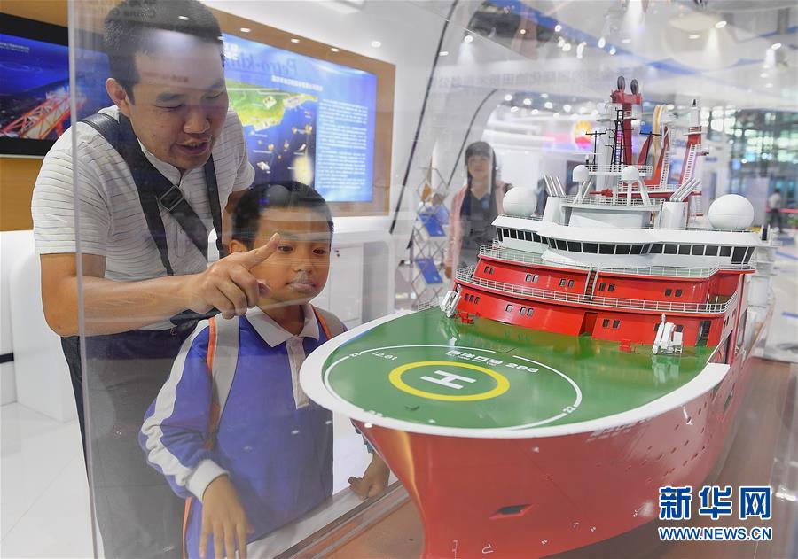 10月15日,觀眾在招商局展臺(tái)了解首艘國產(chǎn)極地探險(xiǎn)郵輪“格雷格·莫蒂默”號(hào)。 當(dāng)日,2019中國海洋經(jīng)濟(jì)博覽會(huì)在深圳開幕,大批海洋“大國重器”及高新技術(shù)研發(fā)成果亮相。 中國海洋經(jīng)濟(jì)博覽會(huì)被譽(yù)為“中國海洋第一展”。2019中國海洋經(jīng)濟(jì)博覽會(huì)以“藍(lán)色機(jī)遇、共創(chuàng)未來”為主題,吸引450余家企業(yè)和機(jī)構(gòu)參展,將重點(diǎn)圍繞現(xiàn)代港口建設(shè)、海洋高新技術(shù)與裝備制造、海洋可再生能源利用、海水淡化與綜合利用等熱點(diǎn)領(lǐng)域,推出新技術(shù)成果,推進(jìn)中外企業(yè)洽談合作。 新華社記者毛思倩攝