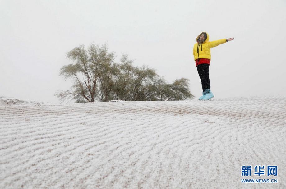 10月15日,游客在寧夏中衛(wèi)市沙坡頭景區(qū)欣賞沙漠雪景。深秋時(shí)節(jié),位于騰格里沙漠邊緣的寧夏中衛(wèi)市沙坡頭景區(qū)迎來一場(chǎng)降雪。漫漫黃沙被覆蓋在皚皚白雪之下,呈現(xiàn)出一種別樣的美。新華網(wǎng)杜文杰攝