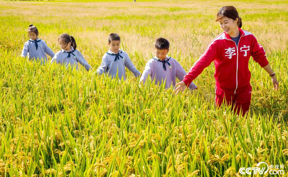 2019年10月15日,浙江省湖州市長(zhǎng)興縣開發(fā)區(qū)實(shí)驗(yàn)幼兒園的老師帶領(lǐng)孩子們走進(jìn)稻田,感受豐收的喜悅。圖片來(lái)源:視覺(jué)中國(guó)