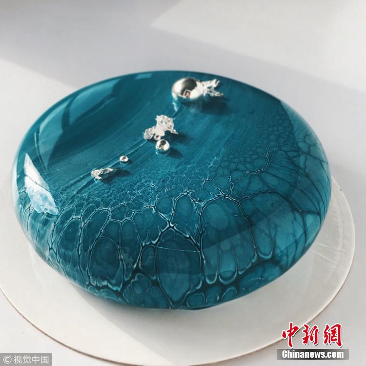 烘焙師運(yùn)用特殊工藝制作的鏡面慕斯蛋糕。圖片來(lái)源:視覺(jué)中國(guó)