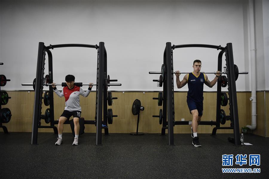 10月16日,運(yùn)動員在軍運(yùn)村內(nèi)的健身中心鍛煉。新華社記者王鵬攝