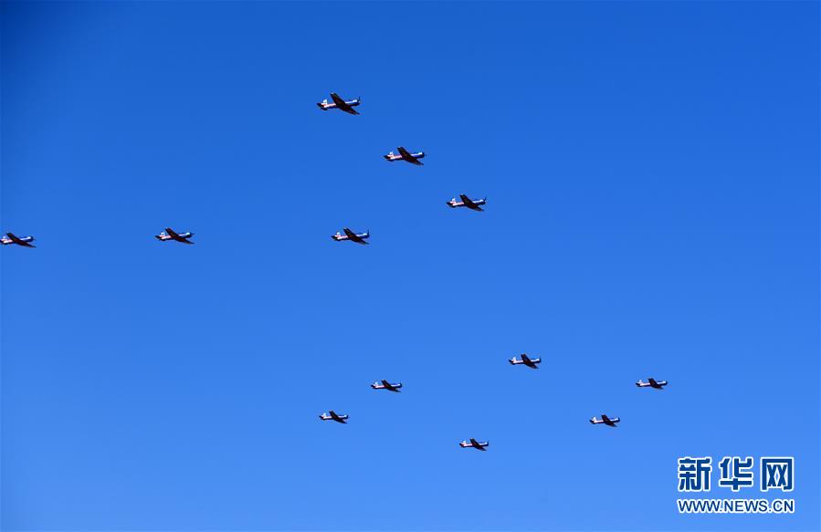10月17日,“天之翼”飛行表演隊(duì)進(jìn)行飛行表演。 當(dāng)日,慶祝人民空軍成立70周年航空開放活動在吉林長春開幕。空軍多支飛行表演隊(duì)、跳傘表演隊(duì)共舞藍(lán)天,殲-20、運(yùn)-20、殲-16等多款主力戰(zhàn)機(jī)展翅蒼穹,空降兵和航空兵作戰(zhàn)部隊(duì)派出精銳力量展示作戰(zhàn)對抗,多型武器裝備大規(guī)模、全系統(tǒng)抵臨現(xiàn)場。人民空軍以前所未有的強(qiáng)大陣容亮相長春,頌揚(yáng)中國航空事業(yè)110年發(fā)展成就,以開放、自信的姿態(tài)為即將到來的人民空軍70華誕獻(xiàn)上大禮。 新華社記者 張楠 攝