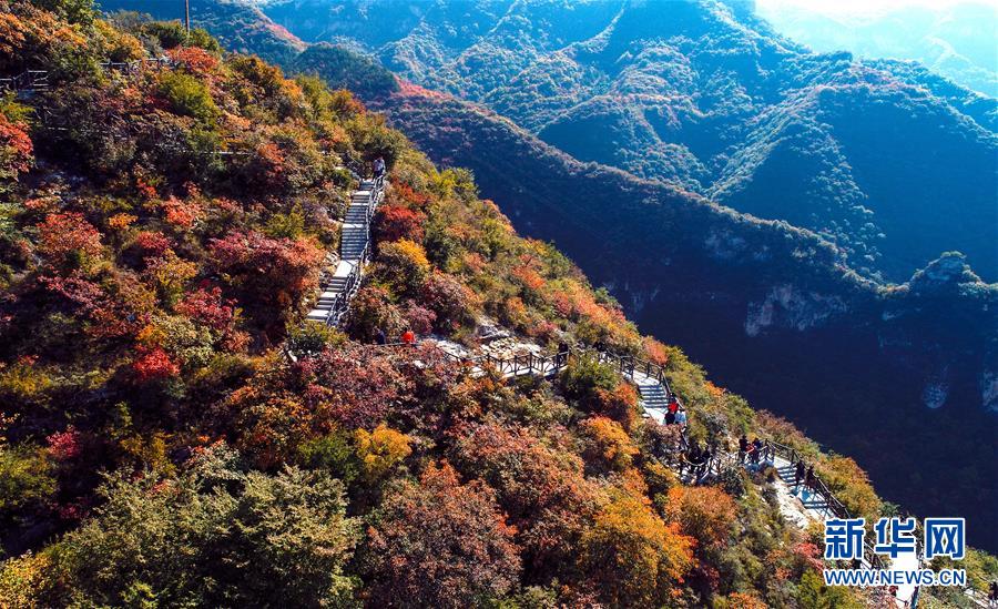 10月24日,游客在河北省武安市賀進(jìn)鎮(zhèn)后臨河村觀賞紅葉。金秋時(shí)節(jié),位于太行山區(qū)的河北省武安市賀進(jìn)鎮(zhèn)后臨河村的紅葉進(jìn)入觀賞佳期。新華社記者王曉攝