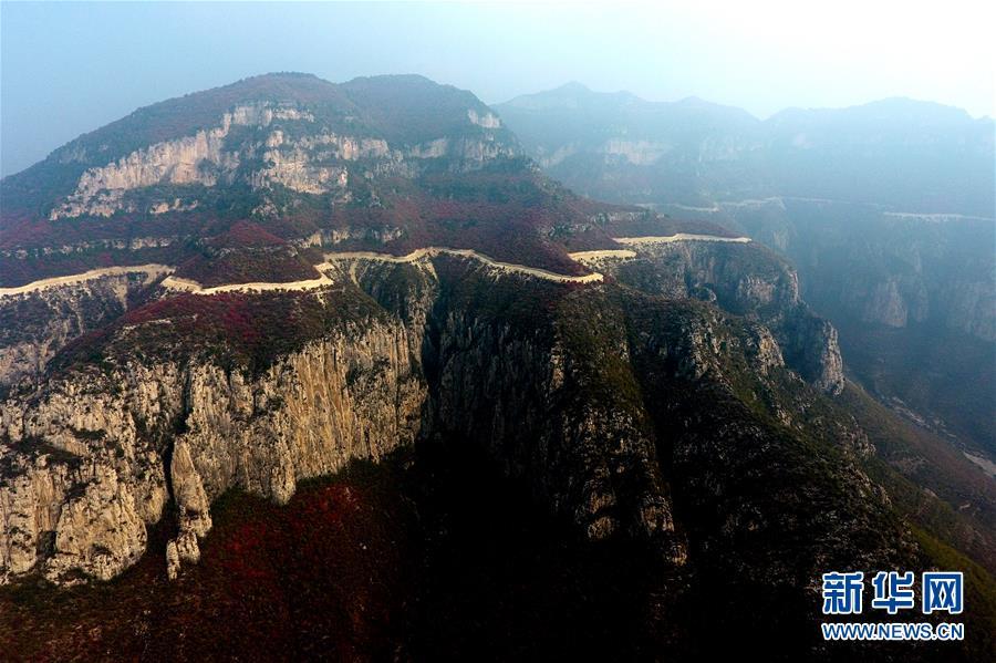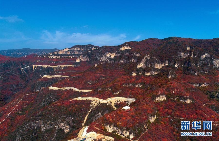 這是10月19日無(wú)人機(jī)拍攝的河北省涉縣太行紅葉大峽谷景色。金秋十月,河北省涉縣偏城鎮(zhèn)太行紅葉大峽谷的紅葉進(jìn)入觀賞佳期,吸引眾多游客前來(lái)登山賞景。新華社記者王曉攝