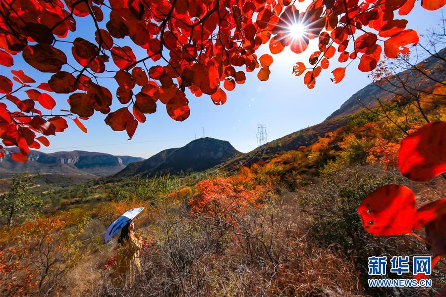 10月24日,游客在河北省武安市賀進鎮(zhèn)后臨河村觀賞紅葉。金秋時節(jié),位于太行山區(qū)的河北省武安市賀進鎮(zhèn)后臨河村的紅葉進入觀賞佳期。新華社記者王曉攝