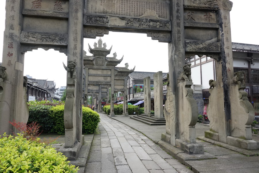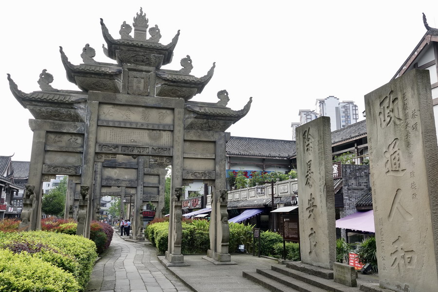 隆昌現(xiàn)存17座石牌坊,其中主要的13座呈念珠狀坐北向南一字排列,位于隆昌城南北兩端的古驛道中央,其余4座散布于鄉(xiāng)間。李仁奇攝