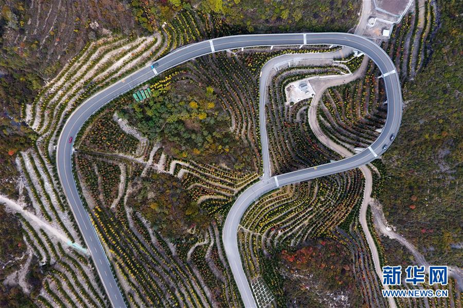 車輛行駛在山西省太原市天龍山公路上(10月24日無人機(jī)拍攝)。