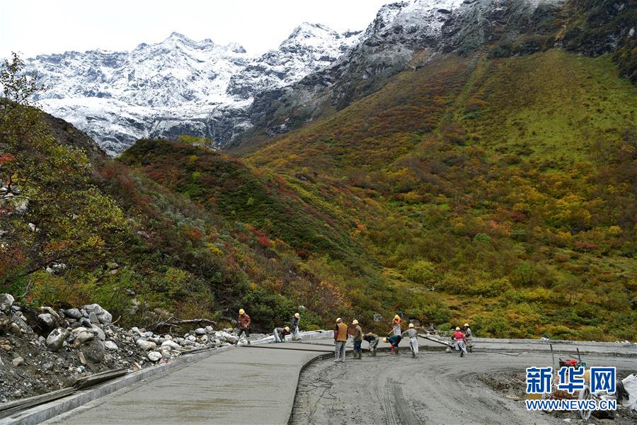 工人們在派墨農村公路施工現(xiàn)場作業(yè)(10月24日攝)。新華社記者李鑫攝