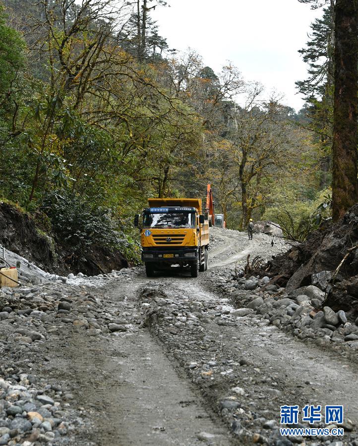 工程車在派墨農(nóng)村公路施工現(xiàn)場(chǎng)作業(yè)(10月24日攝)。新華社記者李鑫攝