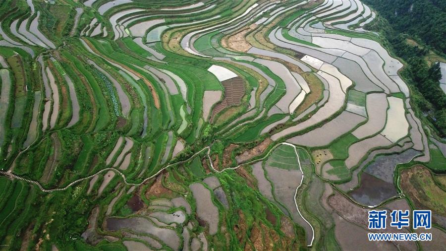 這是5月18日無人機(jī)拍攝的貴州省丹寨縣龍泉鎮(zhèn)高要梯田。初夏時節(jié),位于貴州省丹寨縣龍泉鎮(zhèn)的高要梯田景色優(yōu)美。新華社記者楊文斌攝