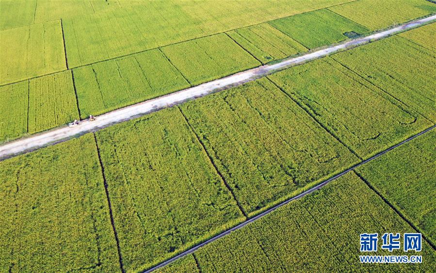 河南省洛陽市孟津縣會盟鎮(zhèn)的稻田(9月23日無人機(jī)拍攝)。新華社記者李嘉南攝