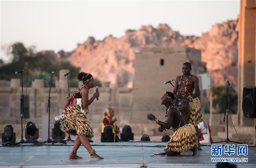 10月27日,演員在位于埃及阿斯旺的菲萊神廟表演。 第四屆中非藝術(shù)節(jié)27日在埃及南部歷史文化名城阿斯旺開幕。來自中國、埃及、尼日利亞、烏干達(dá)、突尼斯等約30個(gè)國家的藝術(shù)團(tuán)在開幕式上奉獻(xiàn)了各具特色的表演,吸引數(shù)百名當(dāng)?shù)赜^眾前往欣賞。  新華社記者 鄔惠我 攝