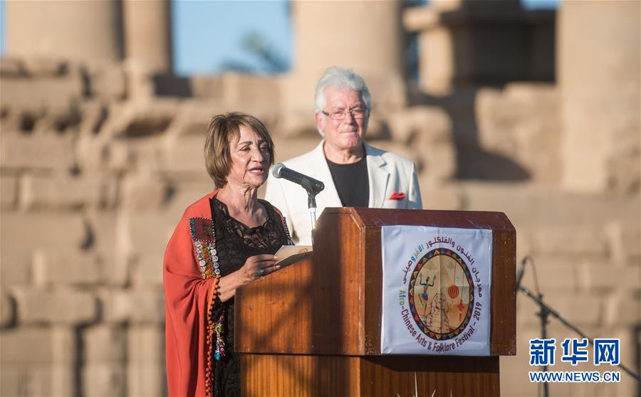 10月27日,在位于埃及阿斯旺的菲萊神廟,中非藝術(shù)節(jié)創(chuàng)始人蘇海爾·阿卜杜勒-卡迪爾在開幕式上發(fā)言。  新華社記者 鄔惠我 攝