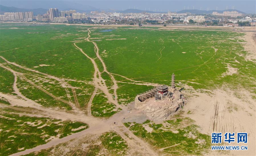 中國最大淡水湖鄱陽湖水位下降落星墩重現(xiàn)天日