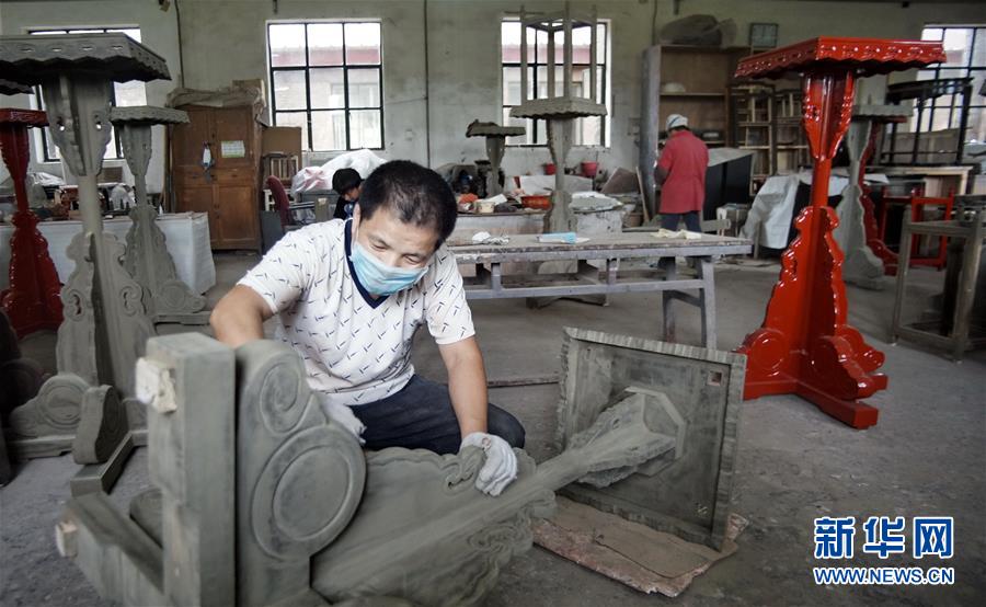北京金漆鑲嵌有限責任公司的技師按照古代工藝制作宮廷宮燈(10月31日攝)。