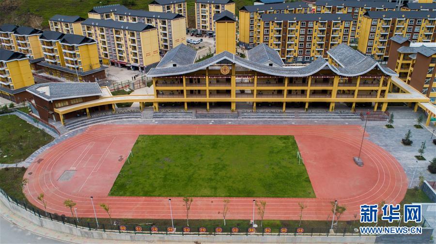 建于怒江邊的大興地鎮(zhèn)維拉壩“珠海小區(qū)”內(nèi)的學校和住房已初現(xiàn)規(guī)模(6月24日無人機拍攝)。新華社記者胡超攝