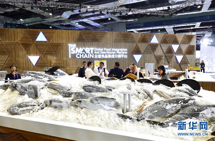 11月5日,參觀者在食品及農(nóng)產(chǎn)品展區(qū)全球食品集成分銷平臺參觀。新華社記者才揚(yáng)攝