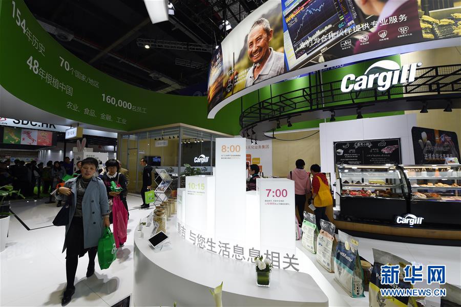 11月10日,在第二屆進(jìn)博會食品及農(nóng)產(chǎn)品展區(qū),參觀者在美國嘉吉公司展臺參觀。新華社記者范培珅攝