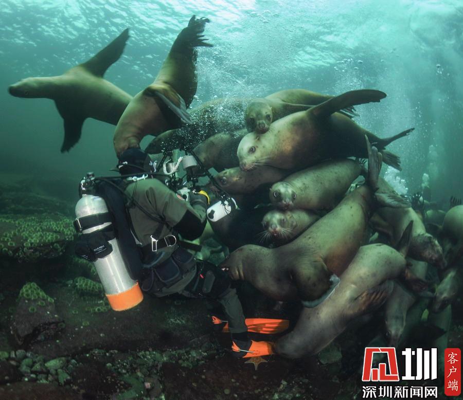 2019年11月12日報道(具體拍攝時間不詳),許多潛水愛好者都會把遇見海底動物當作一種幸運,但如果它們過分熱情,你能扛得住嗎?