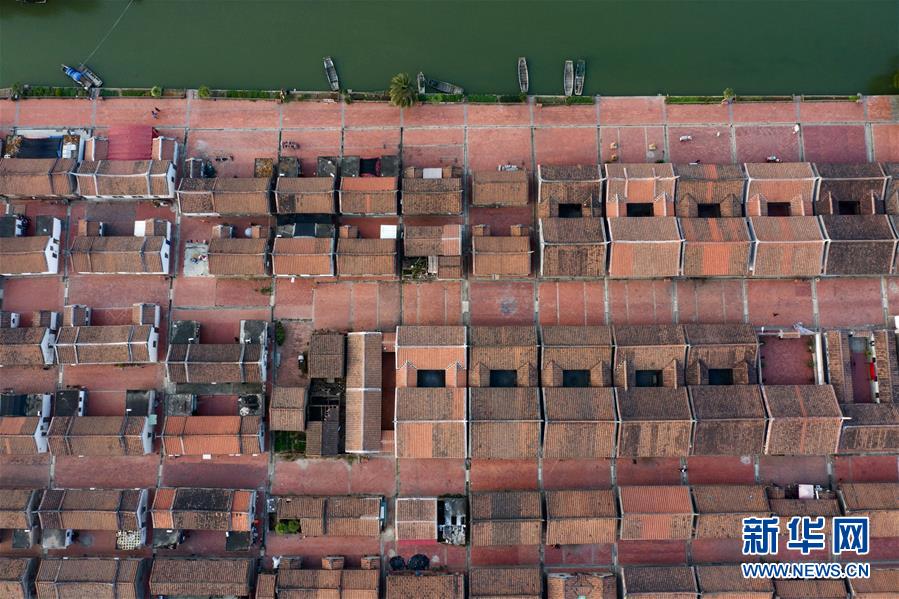 11月14日空中俯瞰閩南水上古村落——埭美村(無人機(jī)拍攝)。埭美村位于福建省龍海市東園鎮(zhèn)九龍江南溪下游,全村四面環(huán)水、村內(nèi)古厝成群,是閩系紅磚建筑文化的杰出代表。近年來,當(dāng)?shù)卣掷m(xù)加大對埭美村古建筑群的修繕與保護(hù),發(fā)展鄉(xiāng)村旅游,讓這座閩南古村重新煥發(fā)生機(jī)與活力。新華社記者姜克紅攝