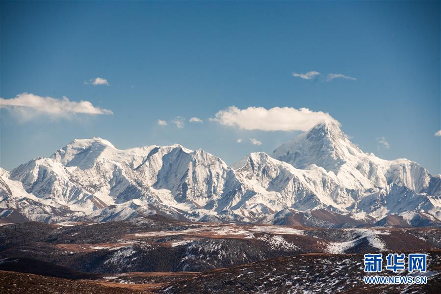 從318國(guó)道高爾寺山段遠(yuǎn)眺四川貢嘎雪山(11月4日攝)。新華社記者江宏景攝