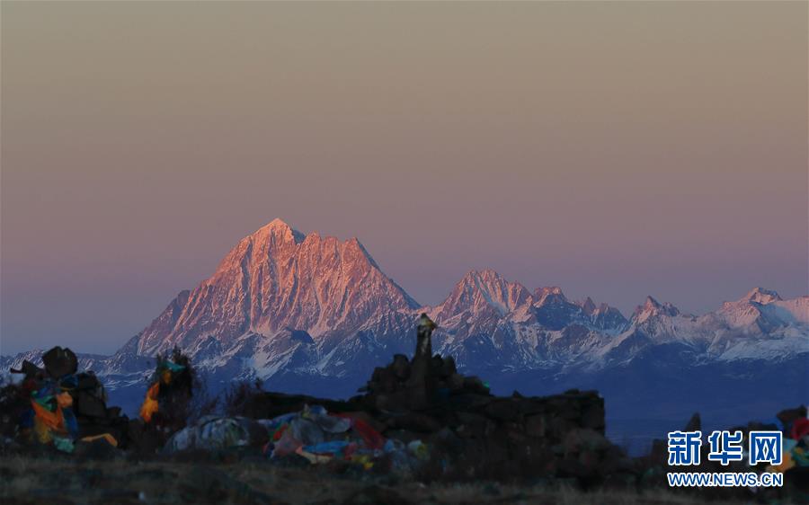 這是在川藏公路四川高爾寺山埡口拍攝的夕陽(yáng)下的貢嘎雪山(2018年11月9日攝)。新華社記者江宏景攝