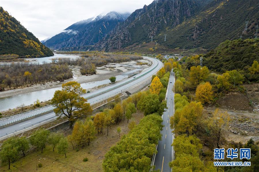 這是318國(guó)道西藏林芝市尼洋河谷段(10月27日無(wú)人機(jī)拍攝)。新華社記者江宏景攝