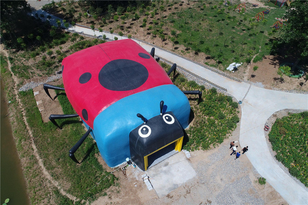 2017年7月23日,湖北省襄陽市,在一處鄉(xiāng)村農家樂景點內,一座七星瓢蟲造型的公廁非常吸引眼球。供圖/視覺中國