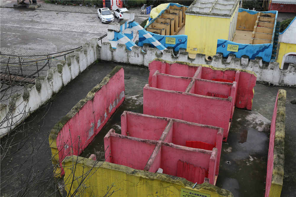 2017年3月15日,重慶,一景區(qū)在一處山坡設置了全長850米的童話城堡風格廁所,數(shù)百間裝修風格各異的男女廁所令人稱奇,景區(qū)也打出了“最牛的廁所”標語。值得一提的是,這些廁所中不少都是全露天的,從山坡高地向下看,廁所內幾乎一覽無余。左冬辰/視覺中國