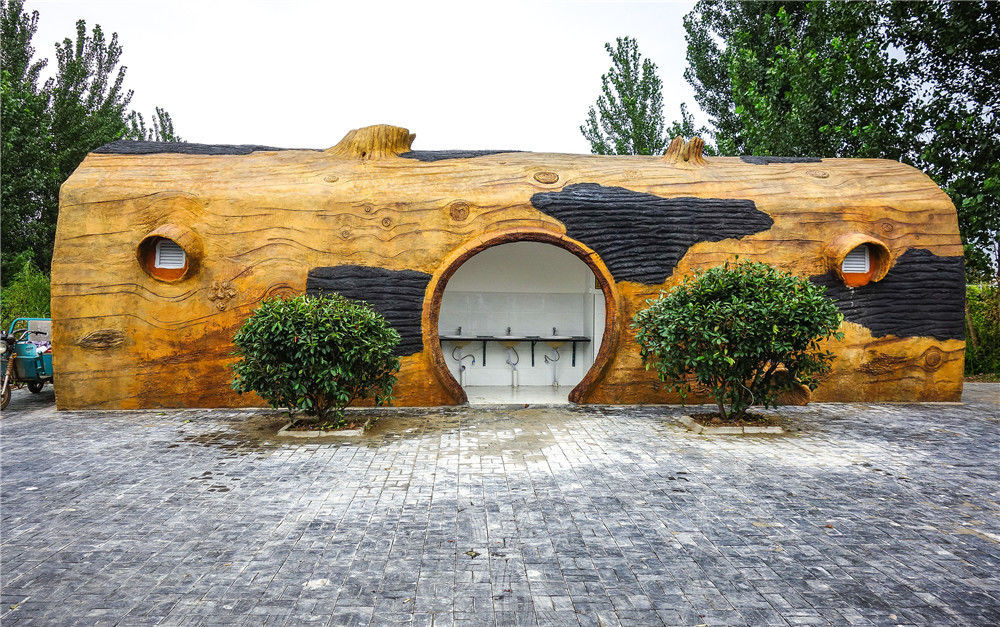 2016年8月8日,安徽淮北,一所酷似大樹干的藝術造型公廁,亮相于淮北段園鎮(zhèn)大莊村葡萄采摘園里,引來很多市民的關注。吳克濤/視覺中國